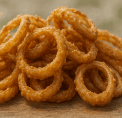 Rincez, égouttez et faites sécher 1.5 kg d’anneaux de calamars dans du papier absorbant. Faites chauffer de l’huile de friture.